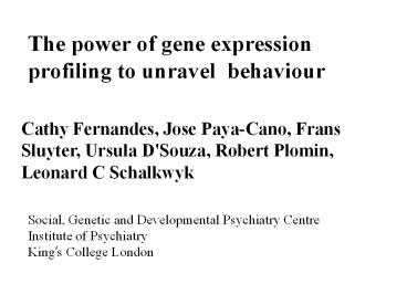 Title: The power of gene expression profiling to unravel behaviour