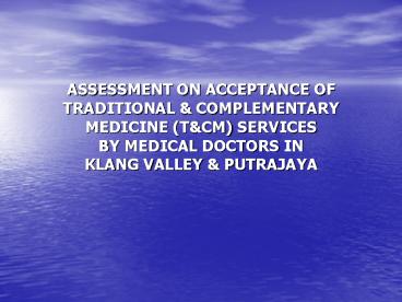Title: ASSESSMENT ON ACCEPTANCE OF TRADITIONAL