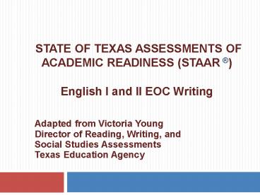 Title: STATE OF TEXAS ASSESSMENTS OF ACADEMIC READINESS (STAAR