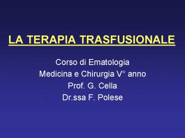 13VALUTAZIONE DELLA EFFICACIA TRASFUSIONALE