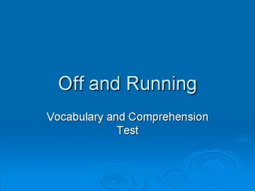 <Notice: Removed> Off and Running PowerPoint PPT Presentation