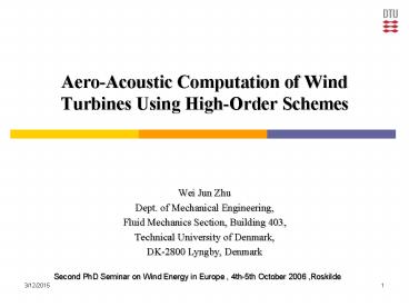 Aero-Acoustic Computation of Wind Turbines Using High-Order Schemes PowerPoint PPT Presentation