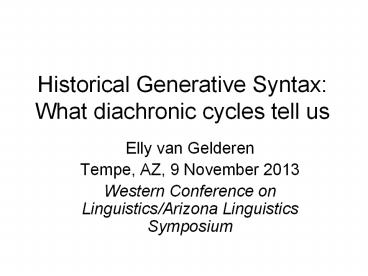 <Notice: Removed> Historical Generative Syntax: What diachronic cycles tell us PowerPoint PPT Presentation