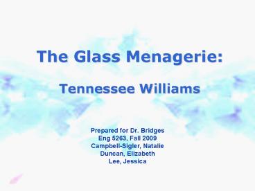 <Notice: Removed> The Glass Menagerie: Tennessee Williams PowerPoint PPT Presentation