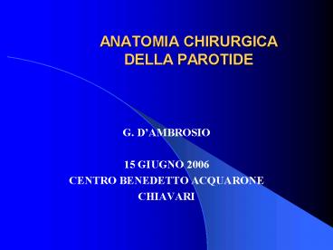 ANATOMIA CHIRURGICA DELLA PAROTIDE PowerPoint PPT Presentation