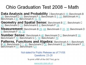 <Notice: Removed> Ohio Graduation Test 2008 PowerPoint PPT Presentation