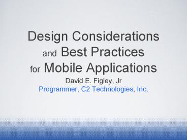 Design Considerations and Best Practices for Mobile Applications PowerPoint PPT Presentation