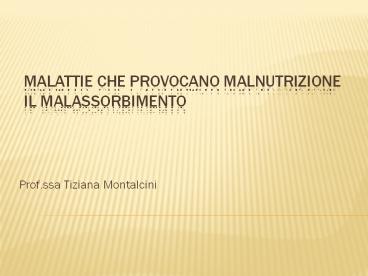 Title: Malattie che provocano Malnutrizione Il Malassorbimento