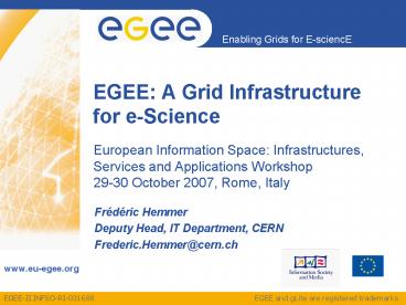 <Notice: Removed> EGEE: A Grid Infrastructure for e-Science PowerPoint PPT Presentation