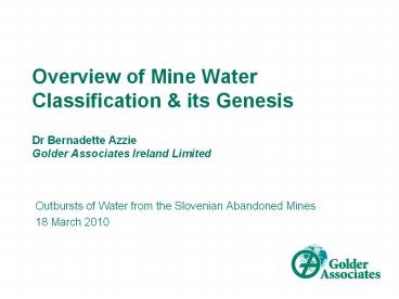 <Notice: Removed> Overview of Mine Water Classification PowerPoint PPT Presentation