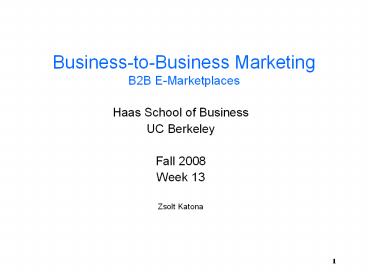 Title: Business-to-Business Marketing B2B E-Marketplaces