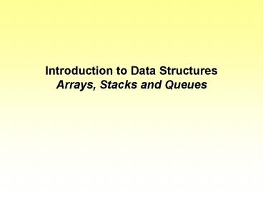 <Notice: Removed> Introduction to Data Structures Arrays, Stacks and Queues PowerPoint PPT Presentation