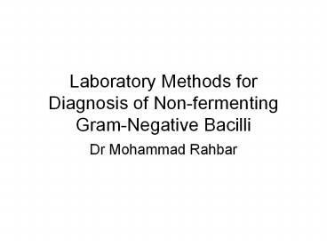 <Notice: Removed> Laboratory Methods for Diagnosis of Non-fermenting Gram-Negative Bacilli PowerPoint PPT Presentation