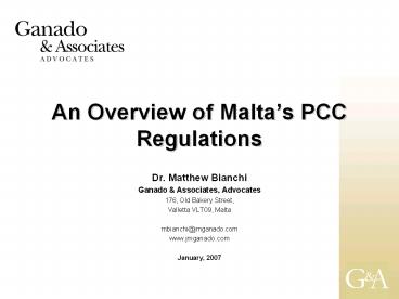 protecting the cellular assets of the Company. - A PCC is at all times a single legal person.