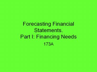 Title: Forecasting Financial Statements. Part I: Financing Needs