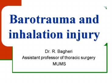 Barotrauma and inhalation injury PowerPoint PPT Presentation