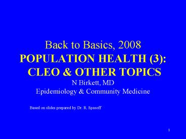 <Notice: Removed> Back to Basics, 2008 POPULATION HEALTH (3): CLEO PowerPoint PPT Presentation
