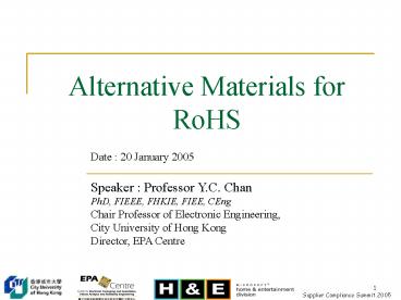 2002/95/EC 27Jan03 Restriction of the use of certain hazardous substances in electrical and electronic equipment (EEE) and to contribute to the protection of human health and the environmentally sound recovery and disposal of waste EEE. 6 banned materials included Pb, Hg, Cr6, Cd and PBB / PBDE. Related consultation paper was issued to interested parties for review on 30/7/04. Max. conc. value - 0.1 by weight in homogeneous material for Pb, Hg, Cr6, PBB/ PBDE Max. conc. value - 0.01 weight in homogenous material for Cd.