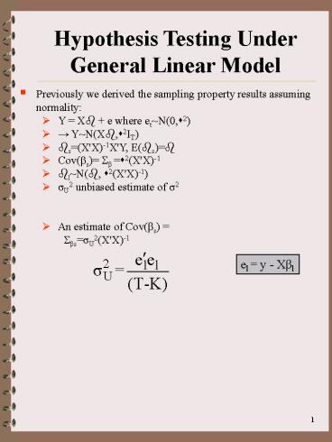 - An estimate of Cov(ßs) ?ßssU2(X'X)-1