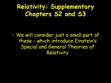 <Notice: Removed> Relativity: Supplementary Chapters S2 and S3 PowerPoint PPT Presentation