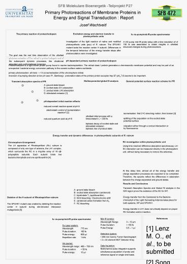 1SFB Molekulare Bioenergetik -Teilprojekt P27