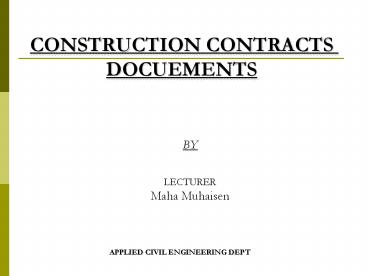 Title: CONSTRUCTION CONTRACTS DOCUEMENTS