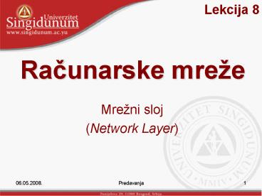 racunara, sve dok paketi ne stignu do odredišta - Sloj mreže odgovoran za prosledivanje paketa sa