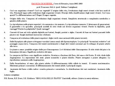 programma di esame del corso di Botanica le
