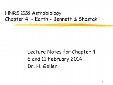 1HNRS 228 AstrobiologyChapter 4 - Earth -