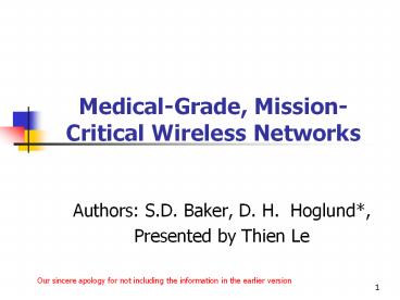 <Notice: Removed> Medical-Grade, Mission-Critical Wireless Networks PowerPoint PPT Presentation