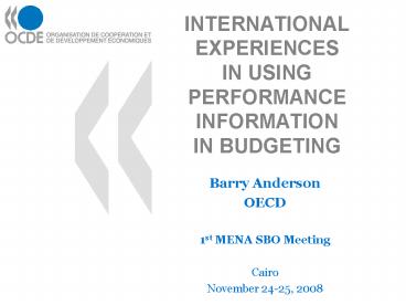 <Notice: Removed> INTERNATIONAL EXPERIENCES IN USING PERFORMANCE INFORMATION IN BUDGETING PowerPoint PPT Presentation