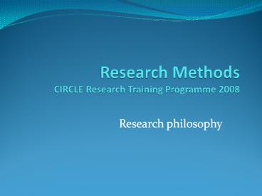<Notice: Removed> Research Methods CIRCLE Research Training Programme 2008 PowerPoint PPT Presentation