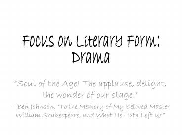 <Notice: Removed> Focus on Literary Form: Drama PowerPoint PPT Presentation