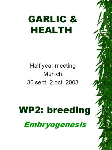 DP13 Establishment of garlic (Allium sativum L.) cell suspensions and plant regeneration L. FEREOL, V. CHOVELON, S. CAUSSE, D. TRIAIRE, N. MICHAUX FERRIERE and R. KAHANE Submitted to Plant Science in June 2003