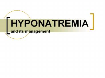 chronic hyponatremia1 - If not treated appropriately, hyponatremia may