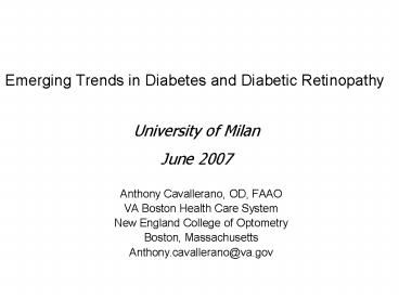 <Notice: Removed> Emerging Trends in Diabetes and Diabetic Retinopathy PowerPoint PPT Presentation