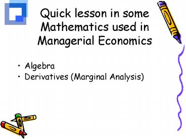 Title: Quick lesson in some Mathematics used in Managerial Economics