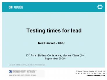 <Notice: Removed> Testing times for lead PowerPoint PPT Presentation