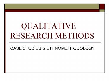 QUALITATIVE RESEARCH METHODS PowerPoint PPT Presentation