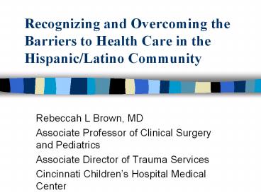 Title: Recognizing and Overcoming the Barriers to Health Care in the Hispanic/Latino Community