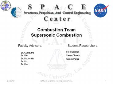 Title: Combustion Team Supersonic Combustion