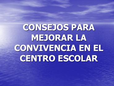 CONSEJOS PARA MEJORAR LA CONVIVENCIA EN EL CENTRO ESCOLAR PowerPoint PPT Presentation