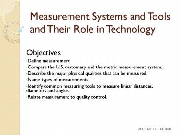 <Notice: Removed> Measurement Systems and Tools and Their Role in Technology PowerPoint PPT Presentation