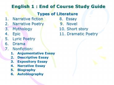 <Notice: Removed> English 1 : End of Course Study Guide PowerPoint PPT Presentation