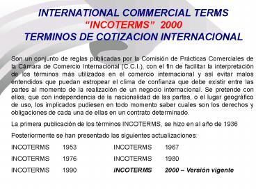 <Notice: Removed> INTERNATIONAL COMMERCIAL TERMS PowerPoint PPT Presentation