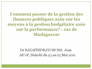 de la gestion budgétaire et la responsabilisation - Priorisation des allocations des ressources