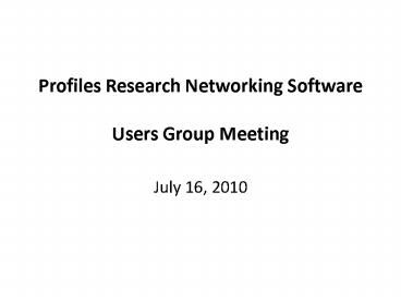<Notice: Removed> Profiles Research Networking Software Users Group Meeting PowerPoint PPT Presentation