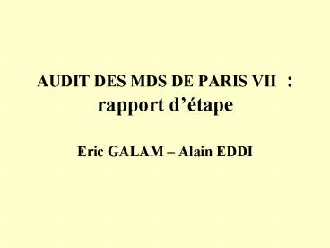 AUDIT DES MDS DE PARIS VII PowerPoint PPT Presentation