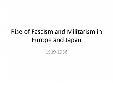 Rise of Fascism and Militarism in Europe and Japan PowerPoint PPT Presentation