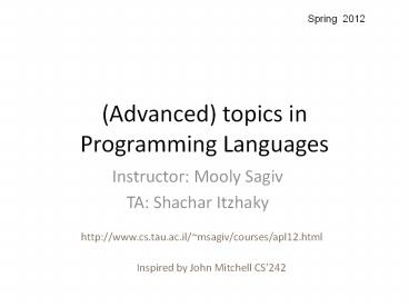 <Notice: Removed> (Advanced) topics in Programming Languages PowerPoint PPT Presentation